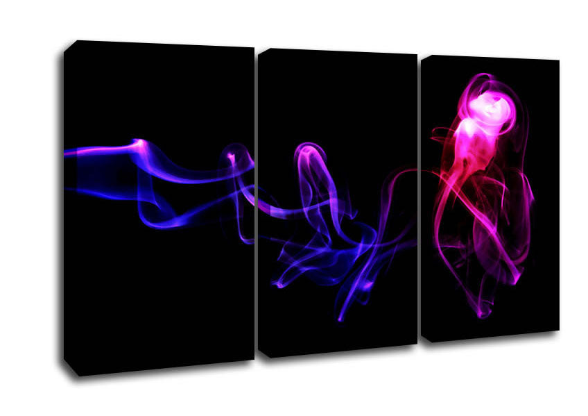 Abstract Smoke 3 Panel Canvas Print handmade in the UK. Stretched over a 2 inch thick wooden box frame, ready to hang on your wall.