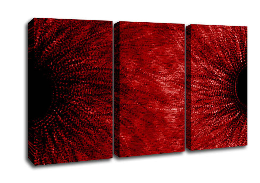 Duo Red 3 Panel Canvas Print handmade in the UK. Stretched over a 2 inch thick wooden box frame, ready to hang on your wall.