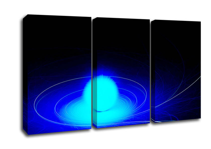 Electric Blue Swirl 3 Panel Canvas Print handmade in the UK. Stretched over a 2 inch thick wooden box frame, ready to hang on your wall.