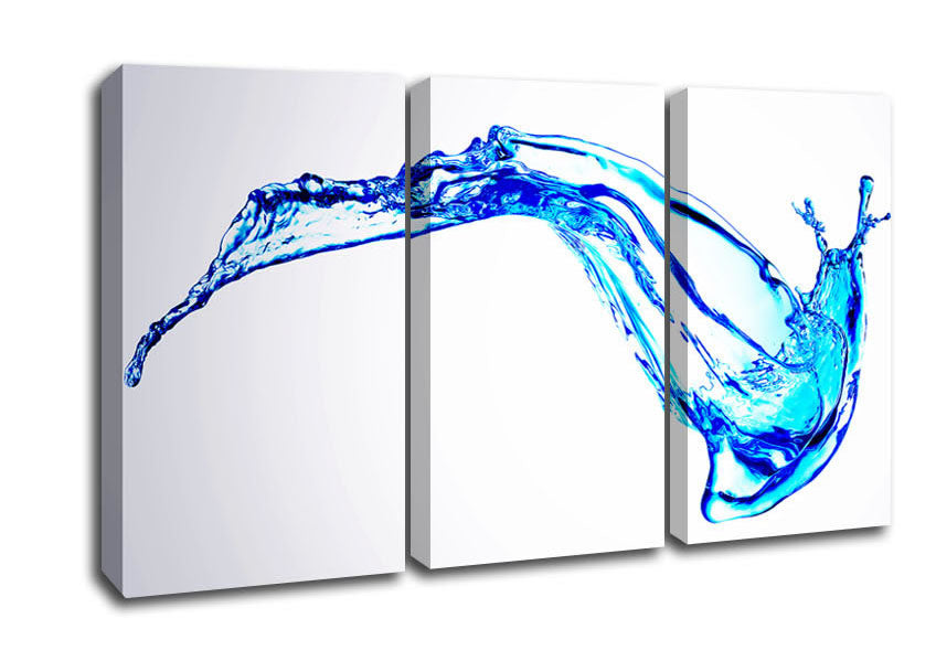 Erratic Water Splash 3 Panel Canvas Print handmade in the UK. Stretched over a 2 inch thick wooden box frame, ready to hang on your wall.