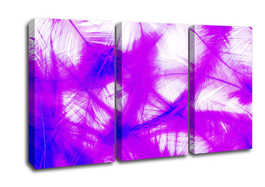 Feathers Pink 3 Panel Canvas Print handmade in the UK. Stretched over a 2 inch thick wooden box frame, ready to hang on your wall.