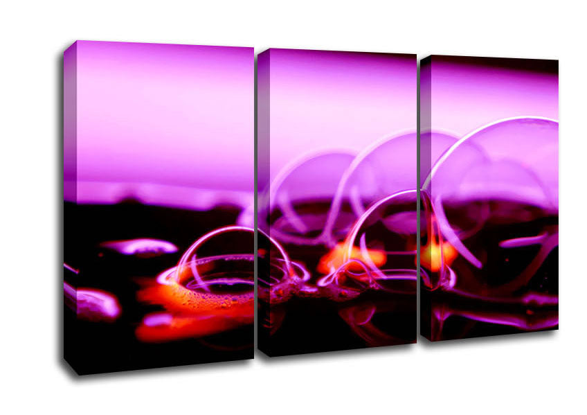 Fire Bubbles 3 Panel Canvas Print handmade in the UK. Stretched over a 2 inch thick wooden box frame, ready to hang on your wall.