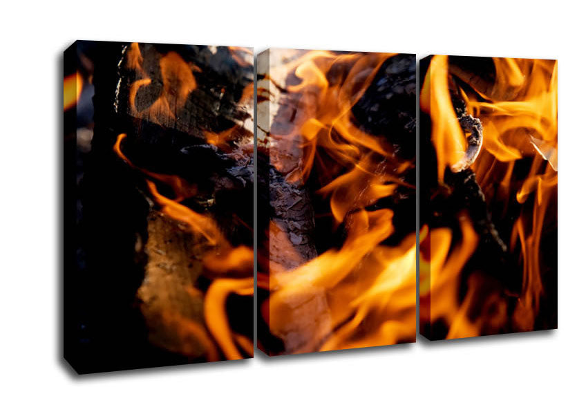 Flames 3 Panel Canvas Print handmade in the UK. Stretched over a 2 inch thick wooden box frame, ready to hang on your wall.