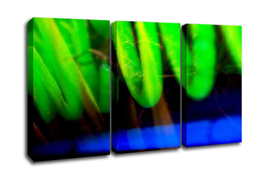 Lime Green Coil 3 Panel Canvas Print handmade in the UK. Stretched over a 2 inch thick wooden box frame, ready to hang on your wall.