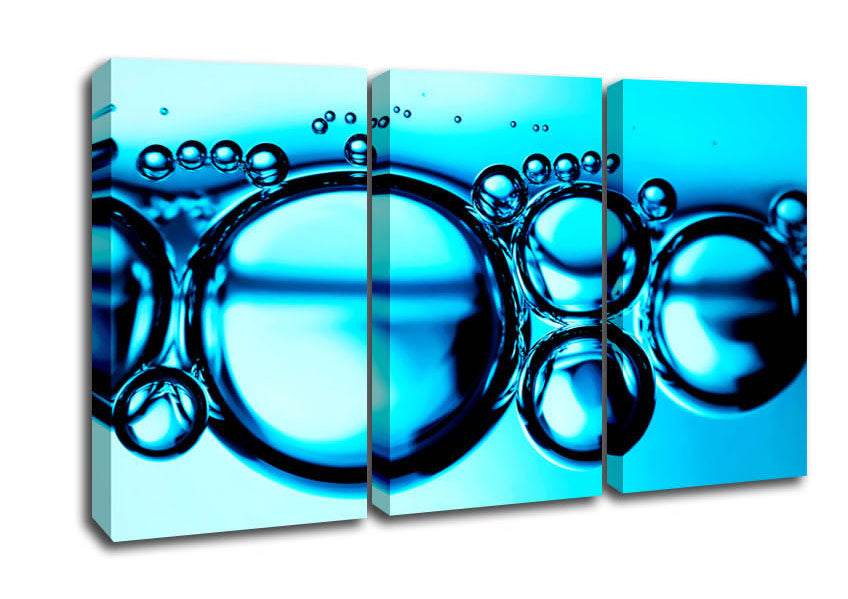 Liquid Bubbles 3 Panel Canvas Print handmade in the UK. Stretched over a 2 inch thick wooden box frame, ready to hang on your wall.
