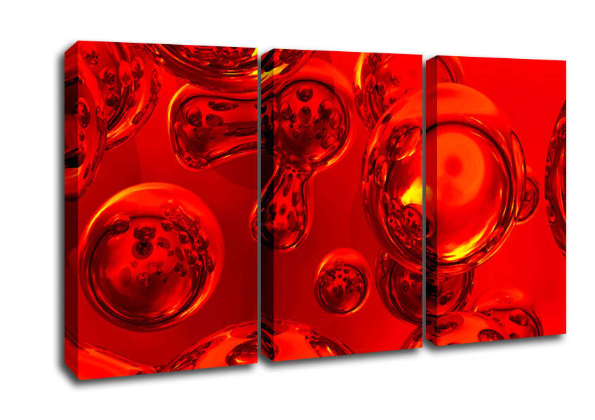 Liquid Fire Bubbles 3 Panel Canvas Print handmade in the UK. Stretched over a 2 inch thick wooden box frame, ready to hang on your wall.