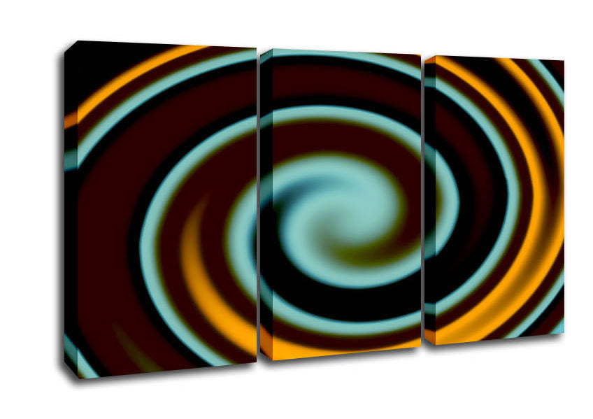 The Swirl 3 Panel Canvas Print handmade in the UK. Stretched over a 2 inch thick wooden box frame, ready to hang on your wall.