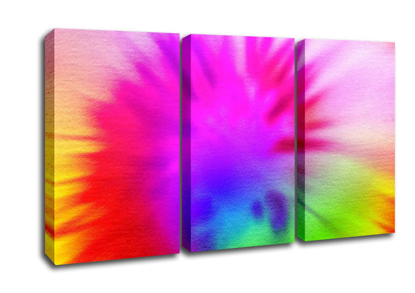 Tie Dye 3 Panel Canvas Print handmade in the UK. Stretched over a 2 inch thick wooden box frame, ready to hang on your wall.