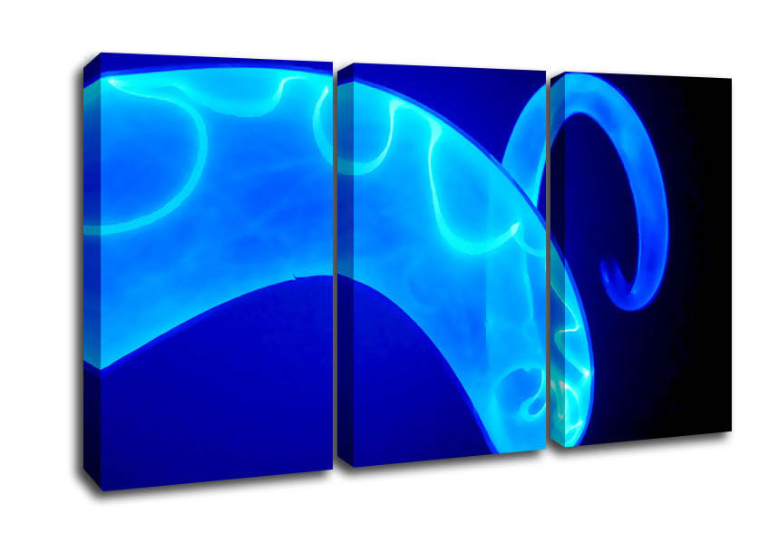 Vibrant Blue Time Lines 3 Panel Canvas Print handmade in the UK. Stretched over a 2 inch thick wooden box frame, ready to hang on your wall.