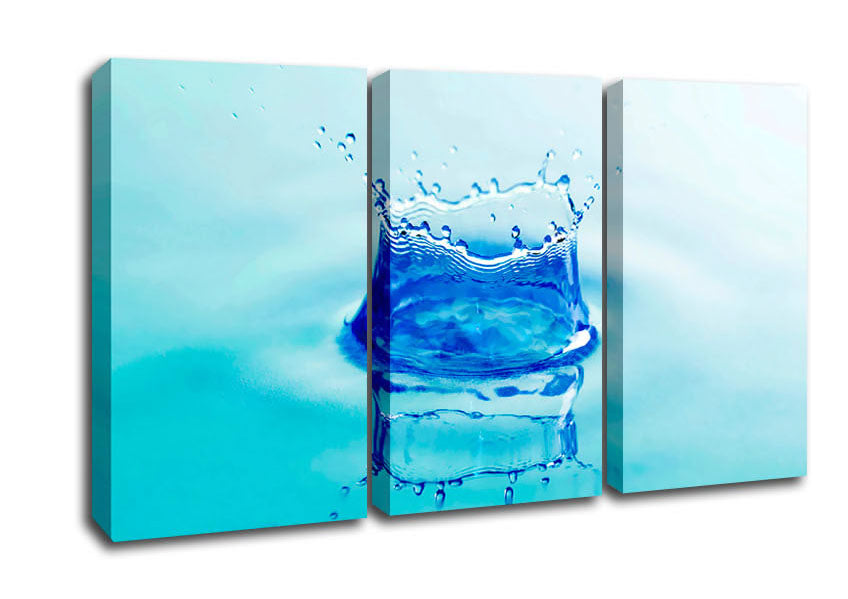 Water Splash Reflection 3 Panel Canvas Print handmade in the UK. Stretched over a 2 inch thick wooden box frame, ready to hang on your wall.