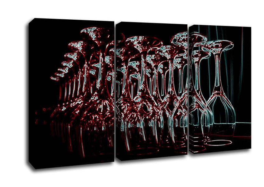 Wine Bar 3 Panel Canvas Print handmade in the UK. Stretched over a 2 inch thick wooden box frame, ready to hang on your wall.
