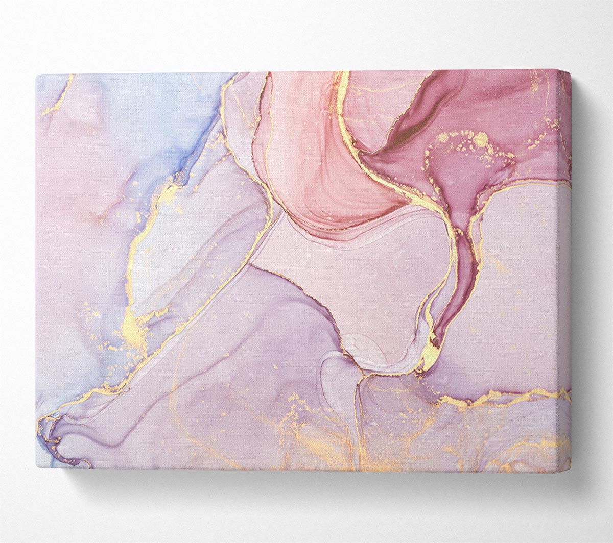 Oil Paint Lilac And Gold Canvas Print handmade in the UK. Stretched over a 2 inch thick wooden box frame, ready to hang on your wall.