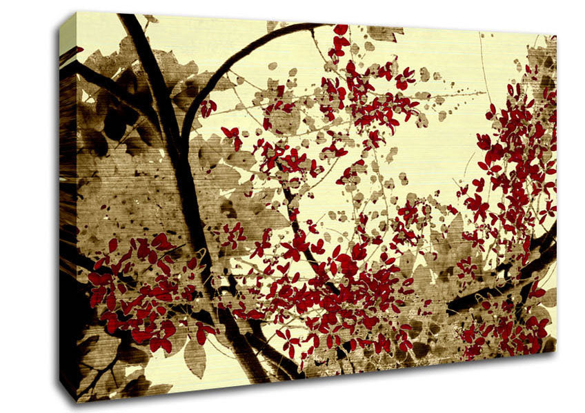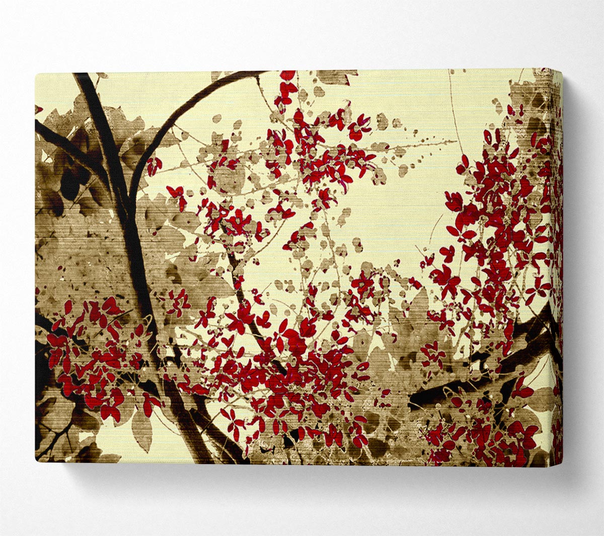 Red Leaves Of The Bay Canvas Print handmade in the UK. Stretched over a 2 inch thick wooden box frame, ready to hang on your wall.