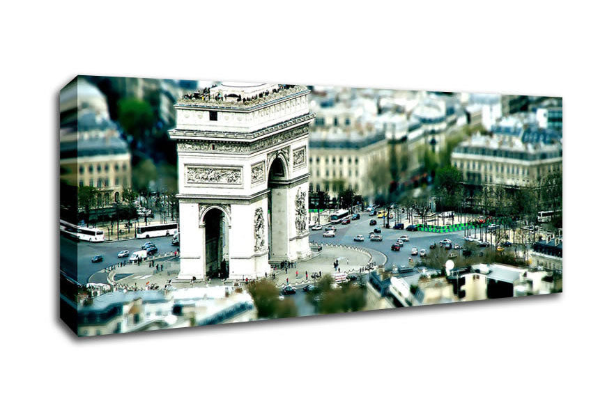 Triumphal Arch Paris Panoramic Canvas Print handmade in the UK. Stretched over a 2 inch thick wooden box frame, ready to hang on your wall.