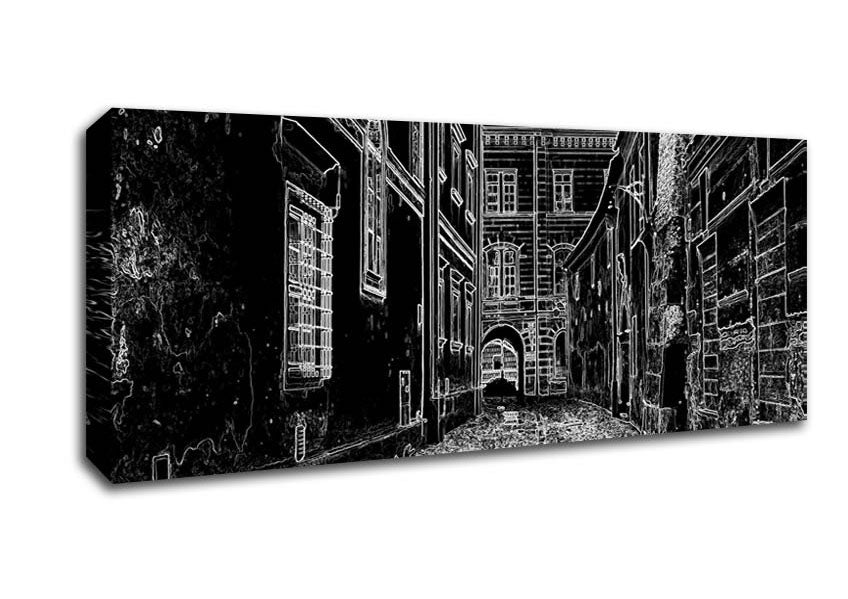 Venice City Streets Psychedelic Panoramic Canvas Print handmade in the UK. Stretched over a 2 inch thick wooden box frame, ready to hang on your wall.