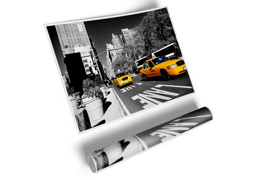 Yellow Taxi In New York City Poster printed on high quality canvas paper, ready to display.