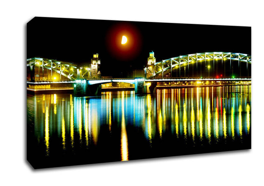 Twin Bridge Moonlight Wide Canvas Print handmade in the UK. Stretched over a 2 inch thick wooden box frame, ready to hang on your wall.