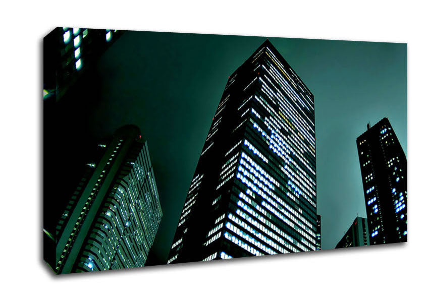 Vertical Green Nights Wide Canvas Print handmade in the UK. Stretched over a 2 inch thick wooden box frame, ready to hang on your wall.