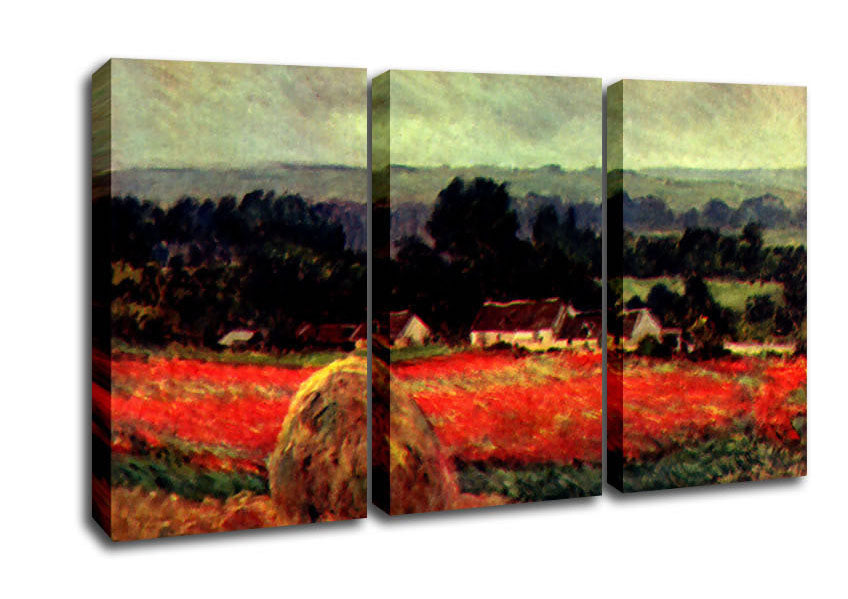 Monet The Poppy Blumenfeld The Barn 3 Panel Canvas Print handmade in the UK. Stretched over a 2 inch thick wooden box frame, ready to hang on your wall.