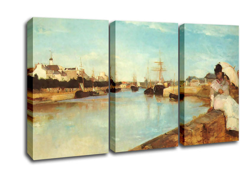 Morisot The Port Of Lorient 3 Panel Canvas Print handmade in the UK. Stretched over a 2 inch thick wooden box frame, ready to hang on your wall.