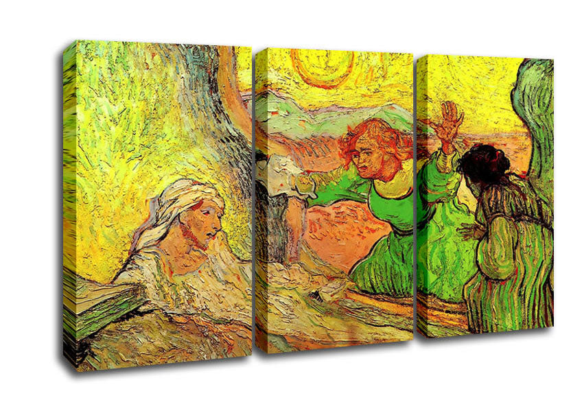 Van Gogh The Raising Of Lazarus After Rembrandt 3 Panel Canvas Print handmade in the UK. Stretched over a 2 inch thick wooden box frame, ready to hang on your wall.