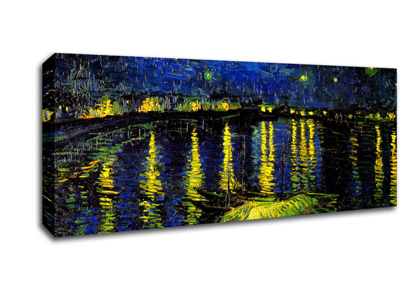 Vincent Van Gogh Starry Night Over Rhone 4 Panoramic Canvas Print handmade in the UK. Stretched over a 2 inch thick wooden box frame, ready to hang on your wall.