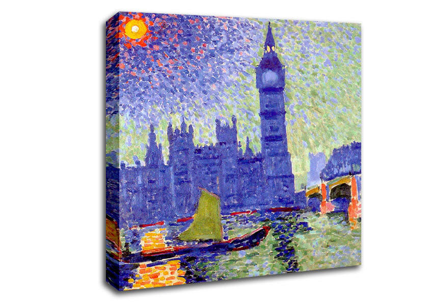 Claude Monet Thames Square Canvas Print handmade in the UK. Stretched over a 2 inch thick wooden box frame, ready to hang on your wall.