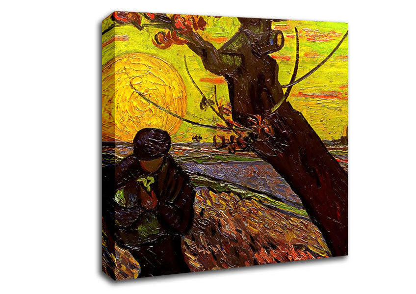 Van Gogh The Sower Square Canvas Print handmade in the UK. Stretched over a 2 inch thick wooden box frame, ready to hang on your wall.