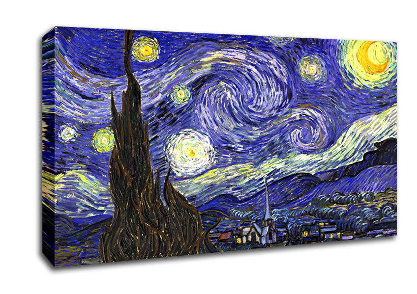 Starry Night Wide Canvas Print handmade in the UK. Stretched over a 2 inch thick wooden box frame, ready to hang on your wall.