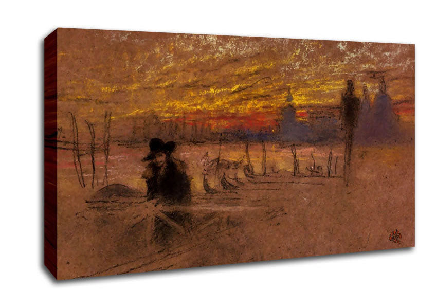 Whistler Sunset Red And Gold Wide Canvas Print handmade in the UK. Stretched over a 2 inch thick wooden box frame, ready to hang on your wall.