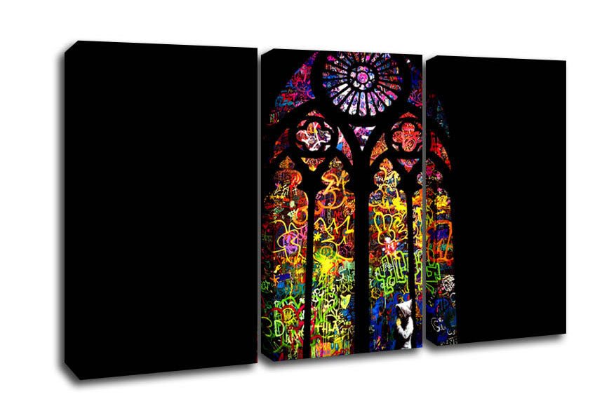 Stained Glass 3 Panel Canvas Print handmade in the UK. Stretched over a 2 inch thick wooden box frame, ready to hang on your wall.