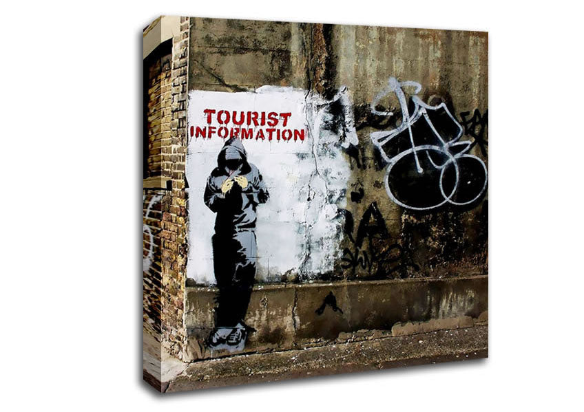 Tourist Information Square Canvas Print handmade in the UK. Stretched over a 2 inch thick wooden box frame, ready to hang on your wall.
