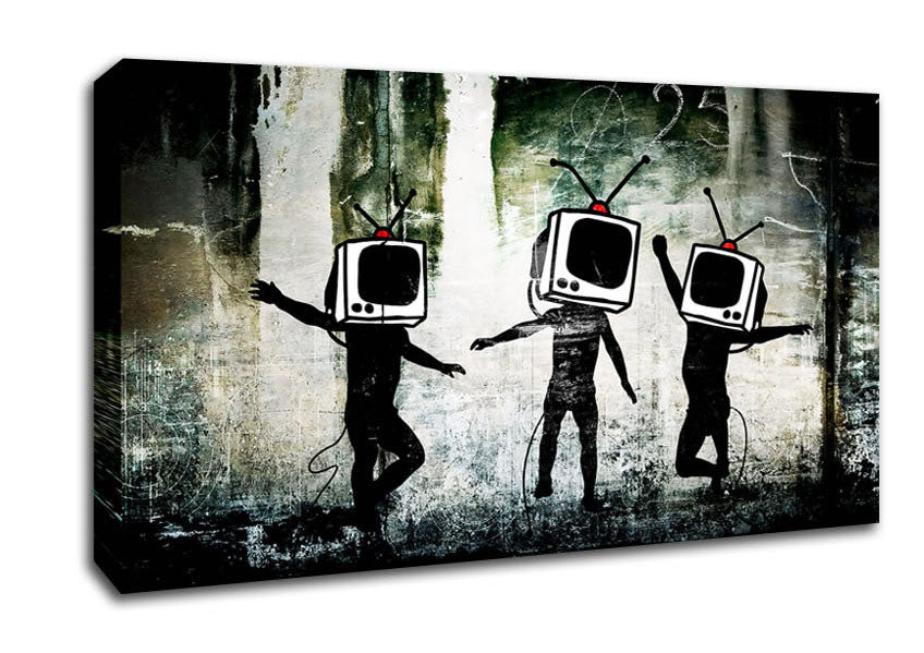 Tv Heads Wide Canvas Print handmade in the UK. Stretched over a 2 inch thick wooden box frame, ready to hang on your wall.
