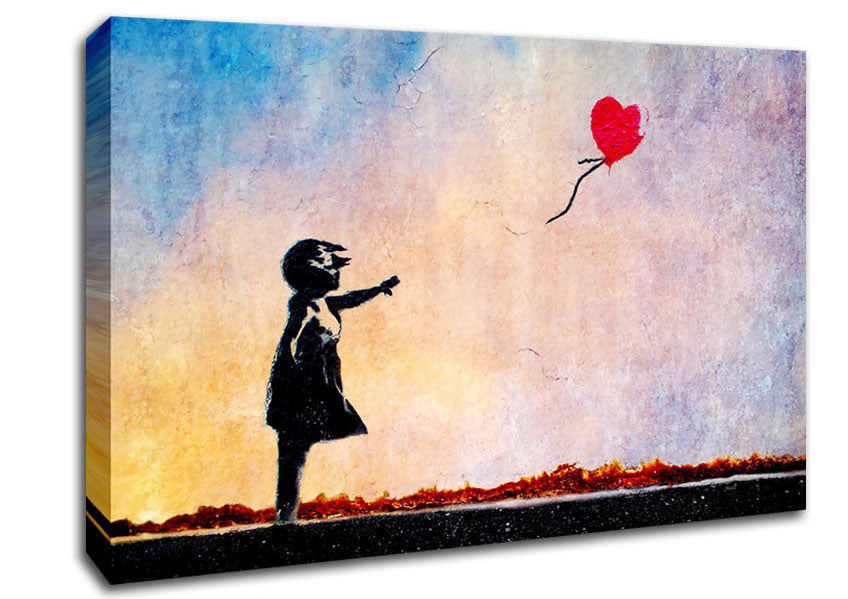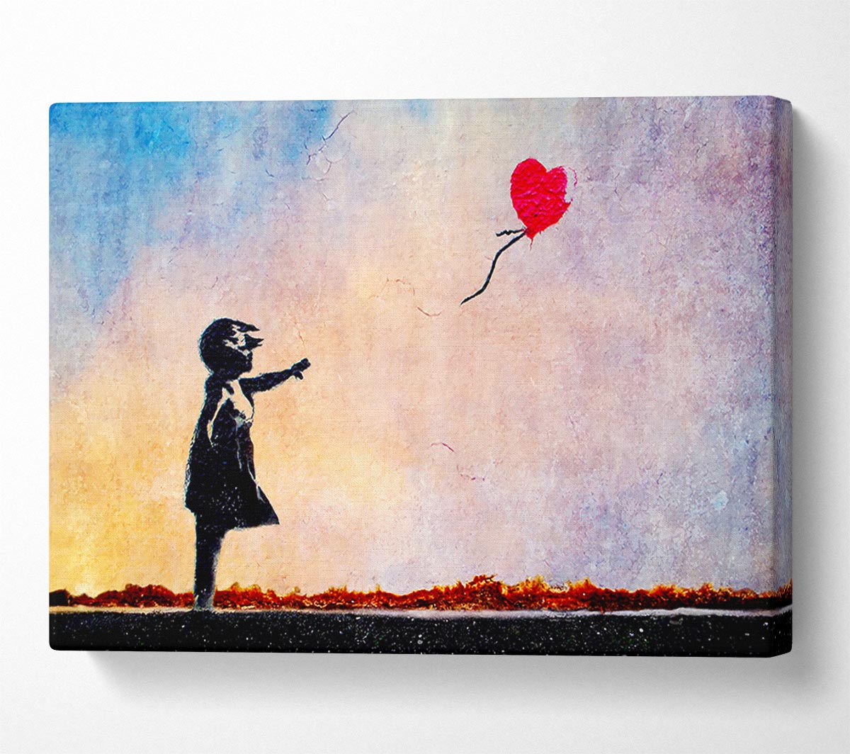 Love Heart Balloon Sunset Canvas Print handmade in the UK. Stretched over a 2 inch thick wooden box frame, ready to hang on your wall.