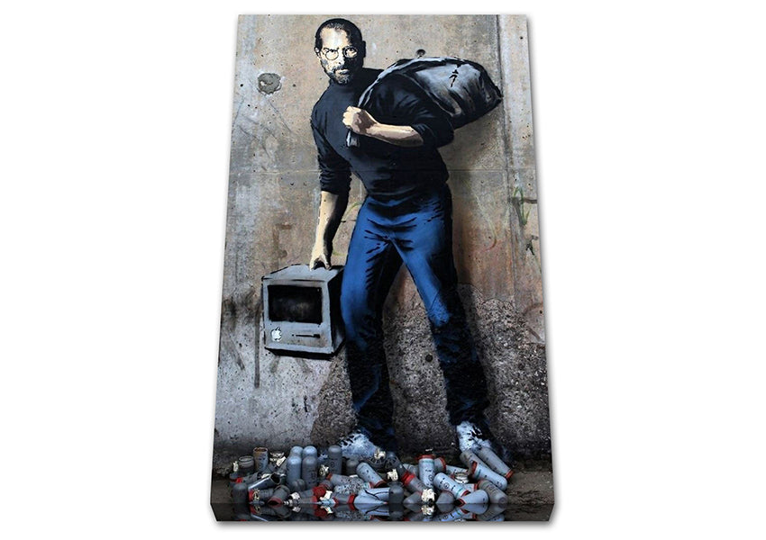 Steve Jobs Apple Canvas Print handmade in the UK. Stretched over a 2 inch thick wooden box frame, ready to hang on your wall.