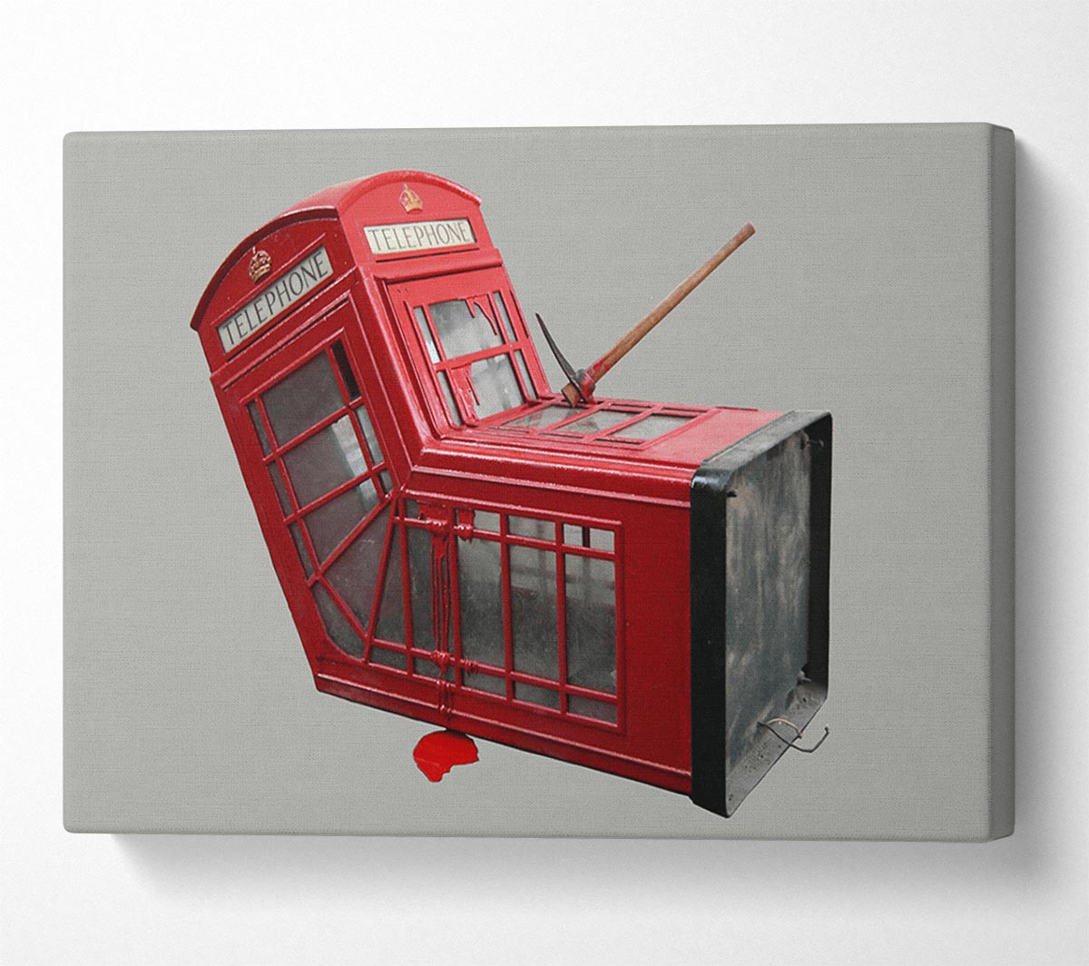 Telephone box Dismaland Canvas Print handmade in the UK. Stretched over a 2 inch thick wooden box frame, ready to hang on your wall.