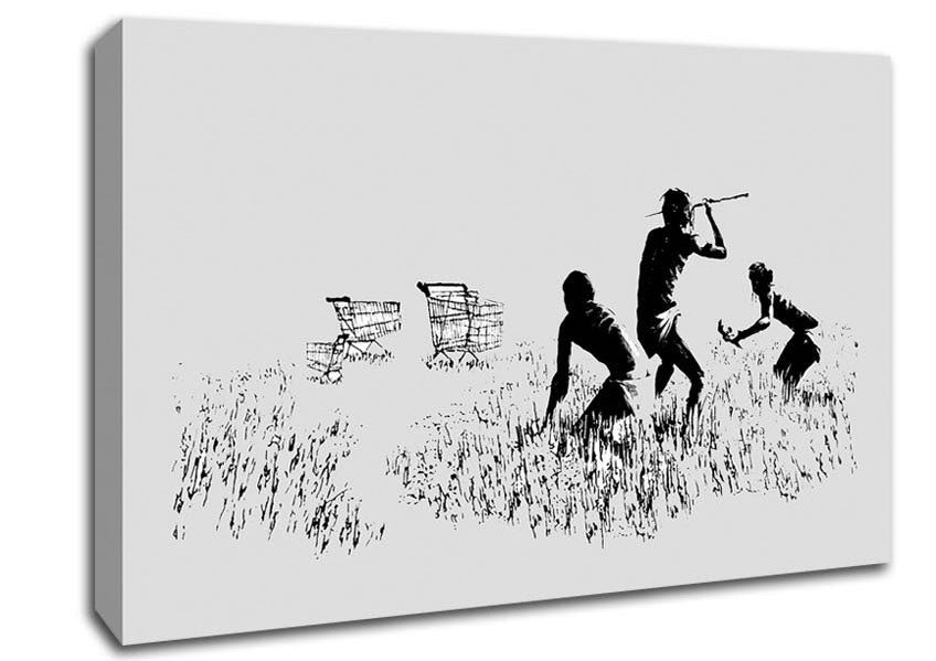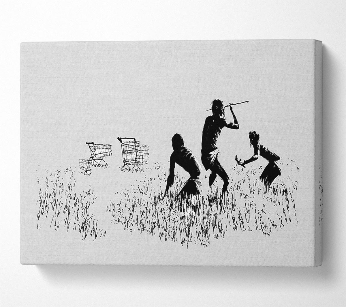 Trolley Hunters Grey Canvas Print handmade in the UK. Stretched over a 2 inch thick wooden box frame, ready to hang on your wall.