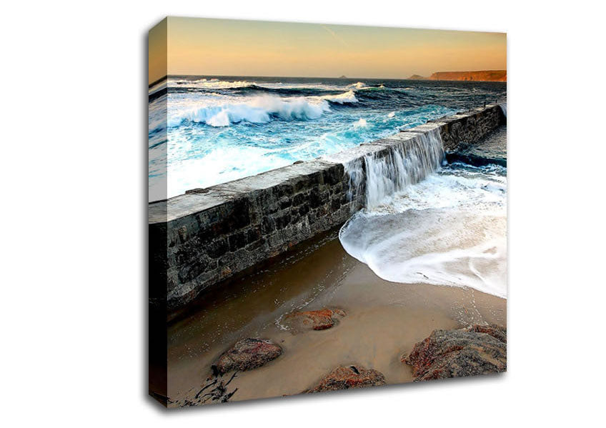 Sea Spill Square Canvas Print handmade in the UK. Stretched over a 2 inch thick wooden box frame, ready to hang on your wall.