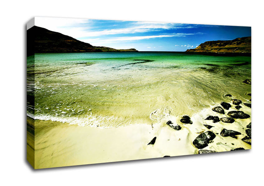 The Ocean Flow Bay Wide Canvas Print handmade in the UK. Stretched over a 2 inch thick wooden box frame, ready to hang on your wall.