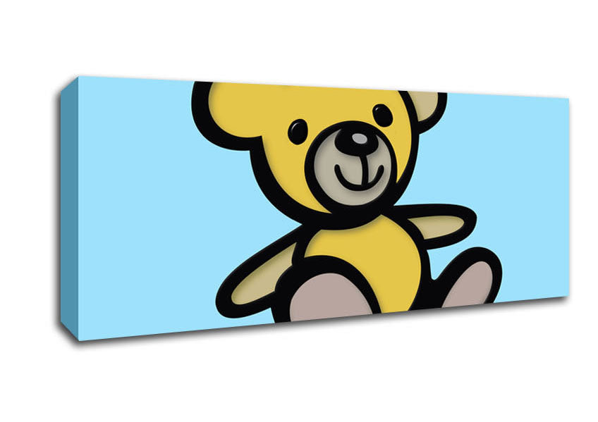 Teddy Bear Cartoon Baby Blue Panoramic Canvas Print handmade in the UK. Stretched over a 2 inch thick wooden box frame, ready to hang on your wall.