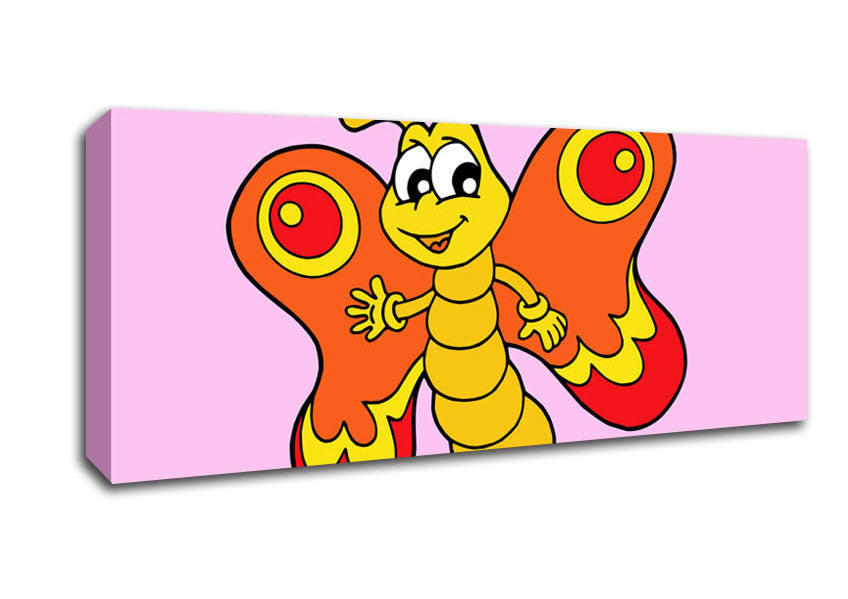 Waving Butterfly Pink Panoramic Canvas Print handmade in the UK. Stretched over a 2 inch thick wooden box frame, ready to hang on your wall.