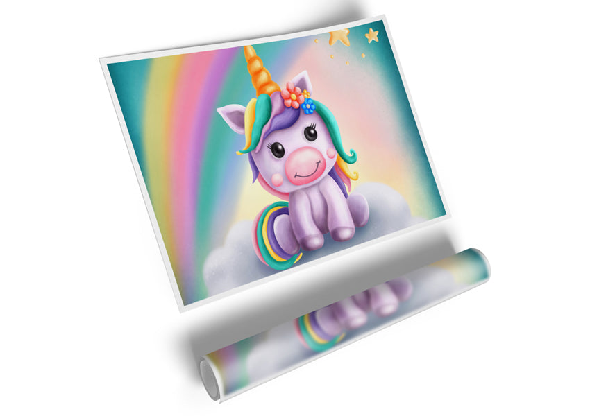Unicorn Rainbow Happy Poster printed on high quality canvas paper, ready to display.