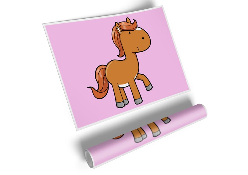 Walking Pony Horse Pink Poster printed on high quality canvas paper, ready to display.