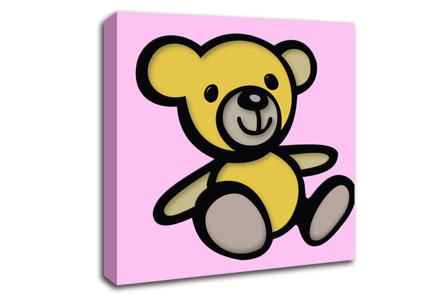 Teddy Bear Cartoon Pink Square Canvas Print handmade in the UK. Stretched over a 2 inch thick wooden box frame, ready to hang on your wall.