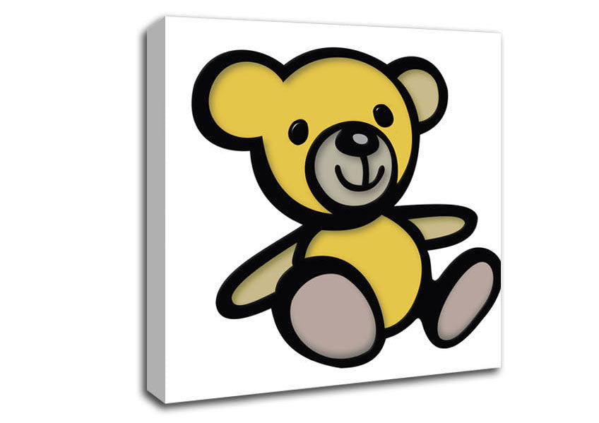 Teddy Bear Cartoon White Square Canvas Print handmade in the UK. Stretched over a 2 inch thick wooden box frame, ready to hang on your wall.