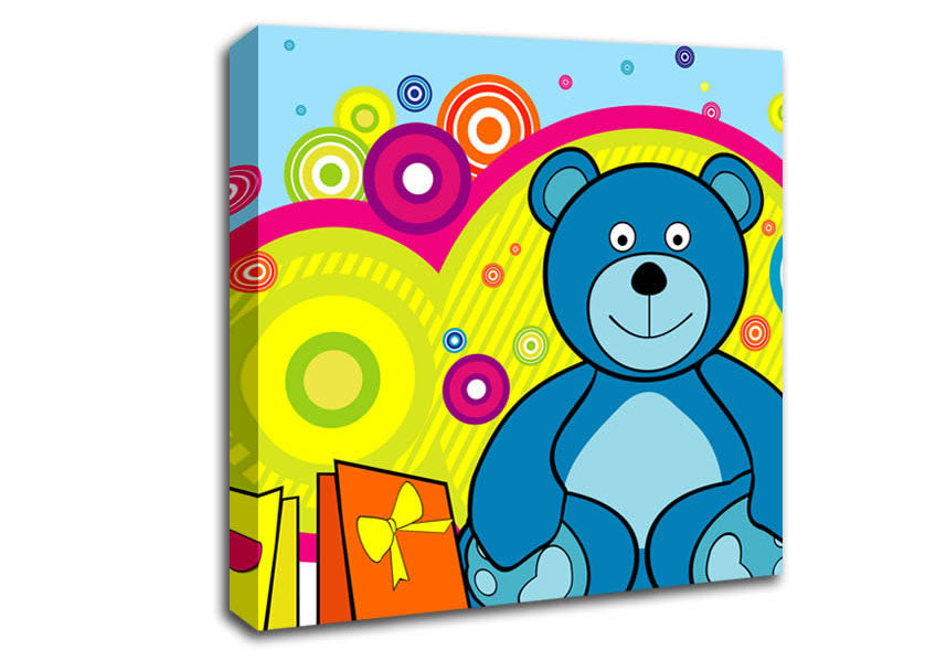Teddy Bear Circles Baby Blue Square Canvas Print handmade in the UK. Stretched over a 2 inch thick wooden box frame, ready to hang on your wall.
