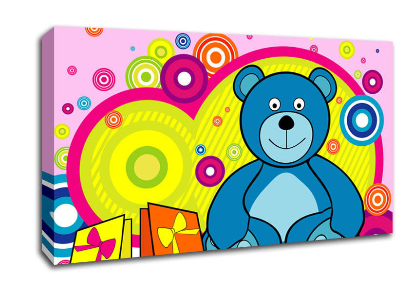 Teddy Bear Circles Pink Wide Canvas Print handmade in the UK. Stretched over a 2 inch thick wooden box frame, ready to hang on your wall.