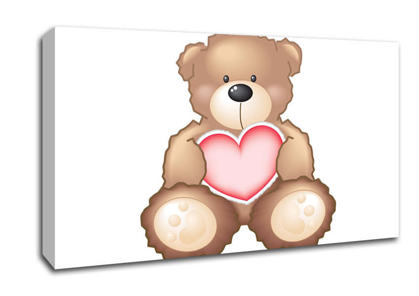 Teddy Bear Love Heart White Wide Canvas Print handmade in the UK. Stretched over a 2 inch thick wooden box frame, ready to hang on your wall.
