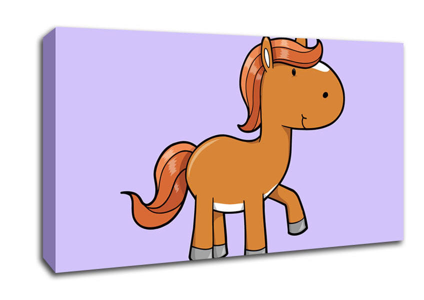 Walking Pony Horse Lilac Wide Canvas Print handmade in the UK. Stretched over a 2 inch thick wooden box frame, ready to hang on your wall.