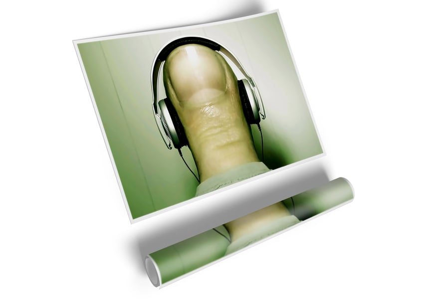 Thumb Headphones Poster printed on high quality canvas paper, ready to display.